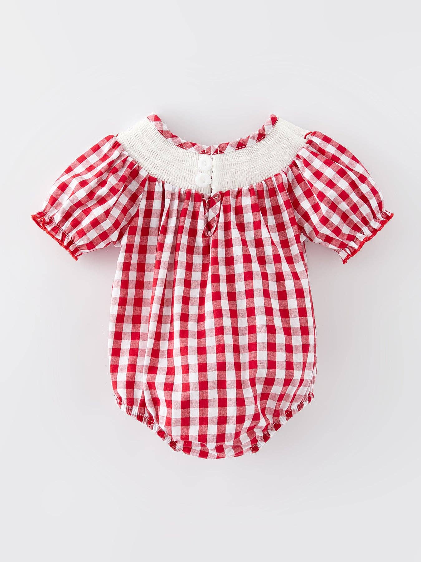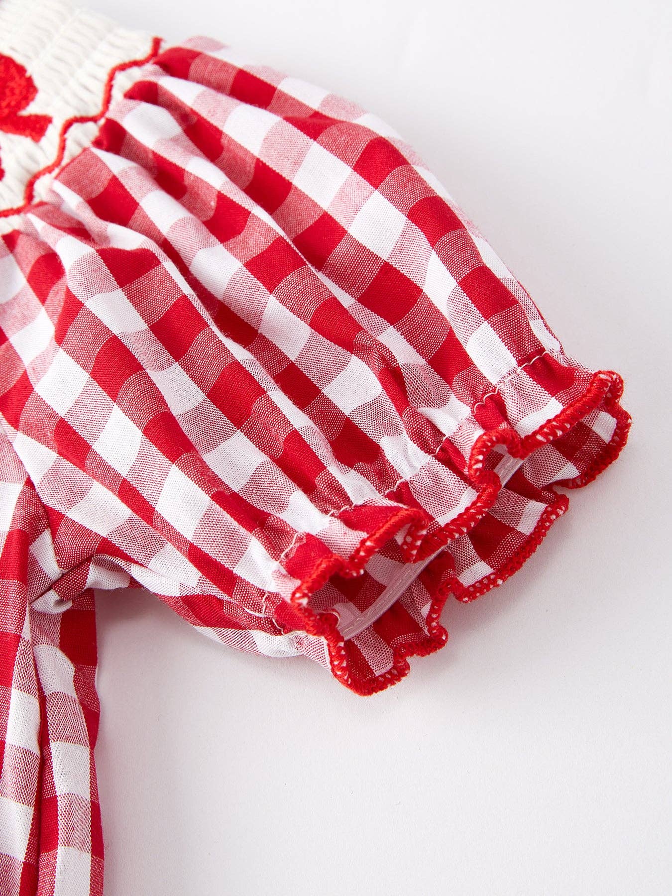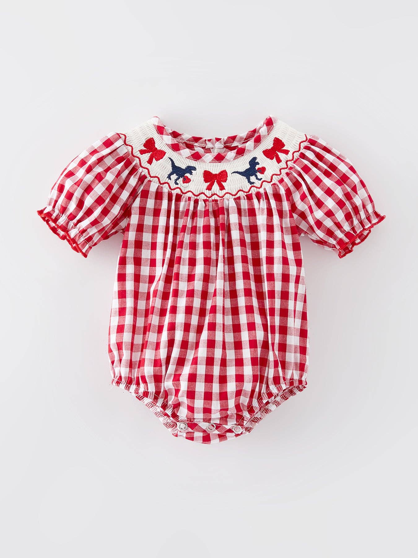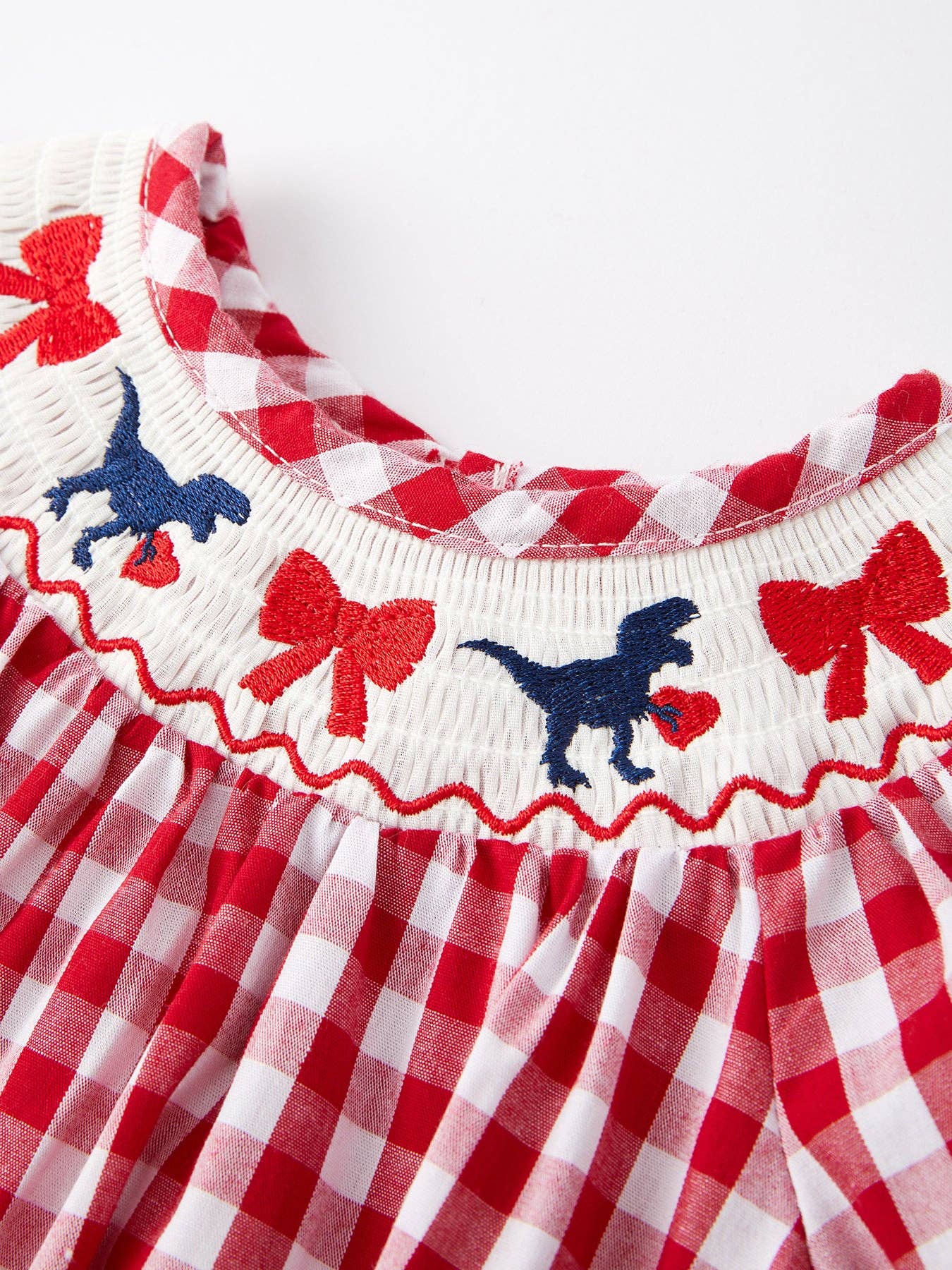Girls Valentine's Day Dinosaur Bow Smocking Embroidered Romper