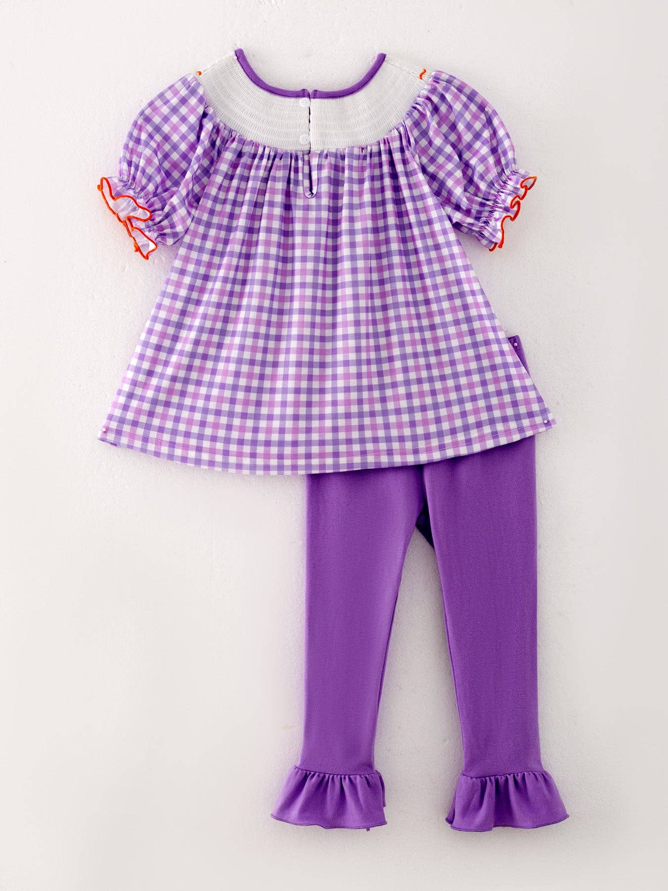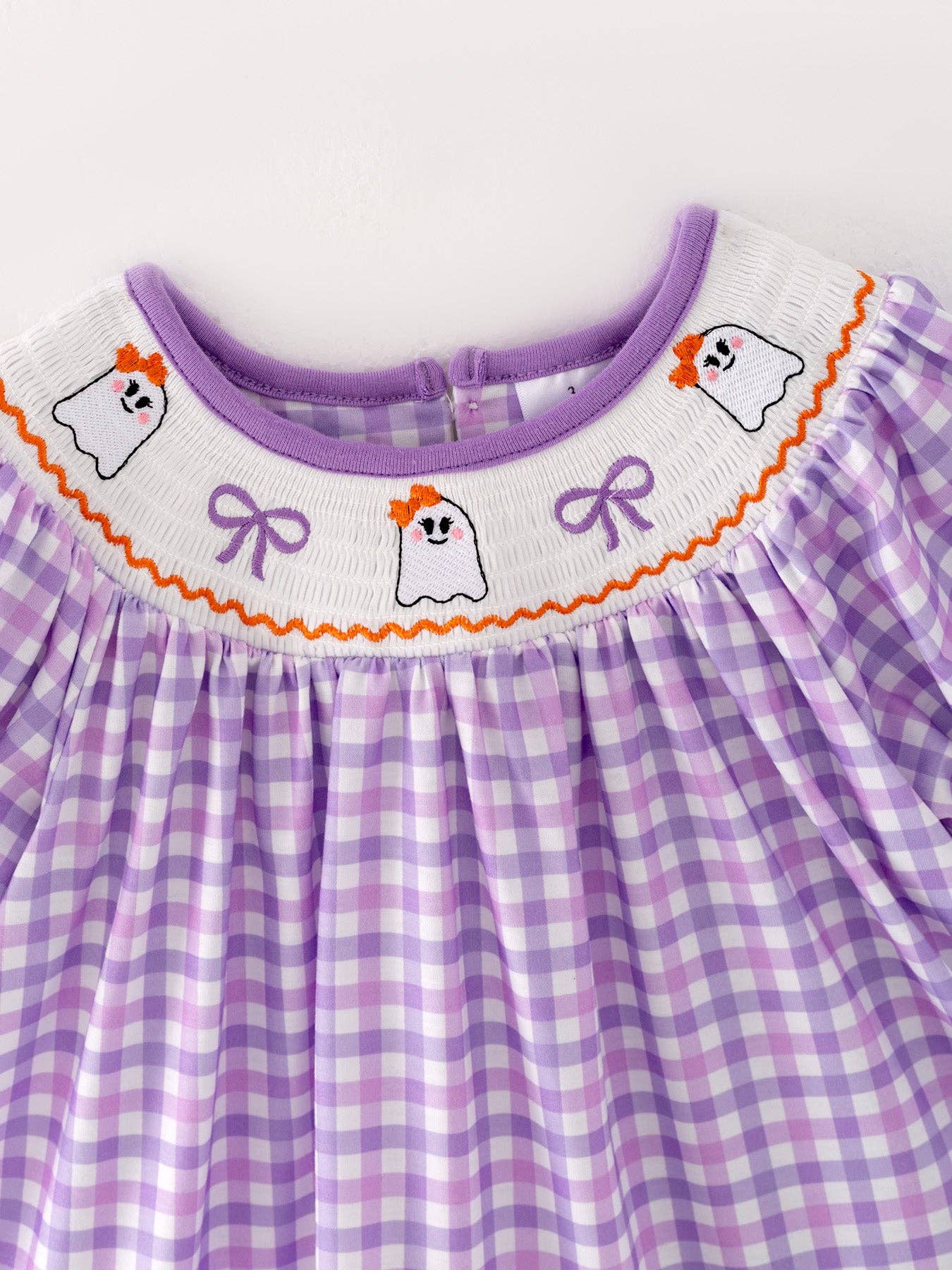 Halloween Girls Purple Smocking Ghost Bow Embroidery Set