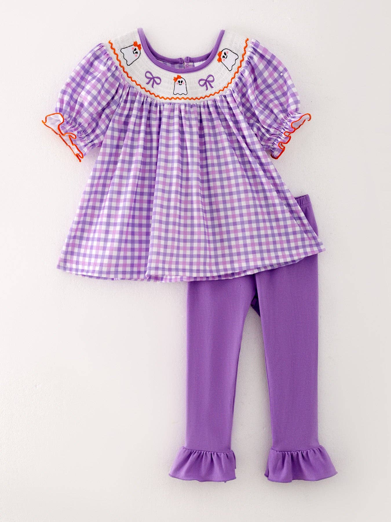 Experience the magic of Halloween with our Girls Purple Smocked Ghost Bow Embroidery Set! This spooktacular set features a hauntingly beautiful smocked design and a charming ghost bow embroidery, perfect for any little witch or ghoul. Get yours now and have a bewitching Halloween!